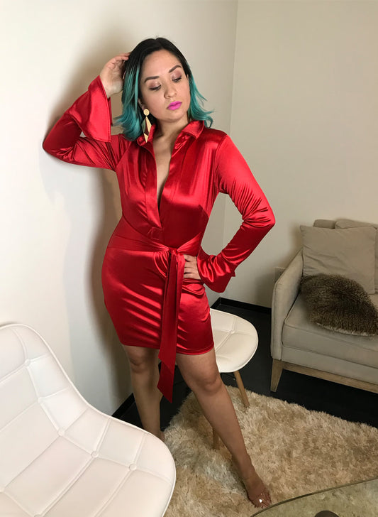 VESTIDO CORTO MANGA LARGA MAGENTA