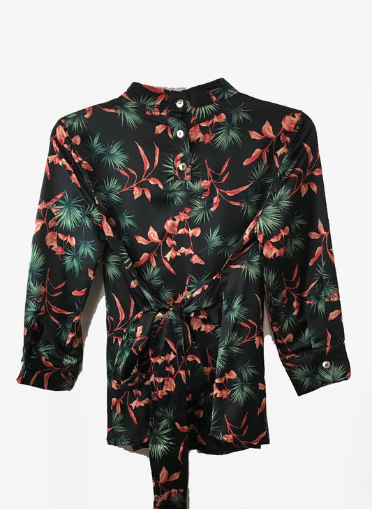 OfertaBLUSA NEGRA CON FLORES SATIN
