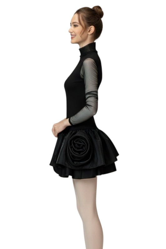 Vestido Corto de Mesh con Piedras Manga Larga Vino