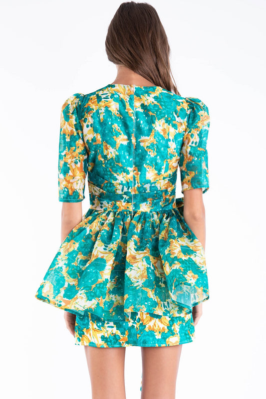 Vestido Corto de Mesh con Piedras Manga larga Azul