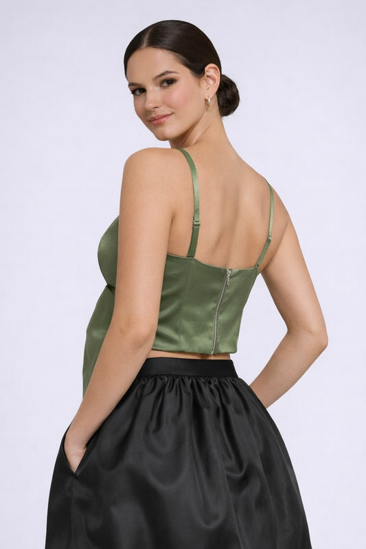 Top Satín Olivo con Moño