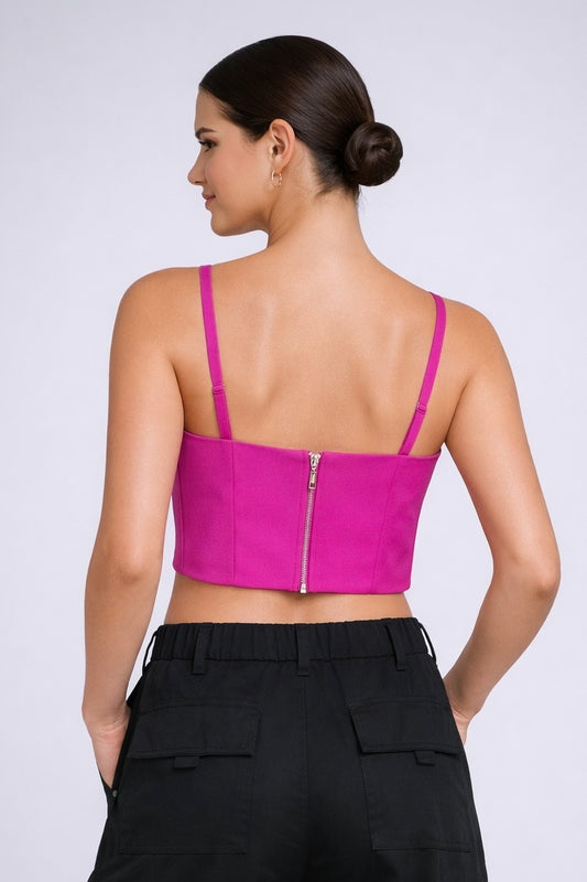 Crop top escote V fucsia