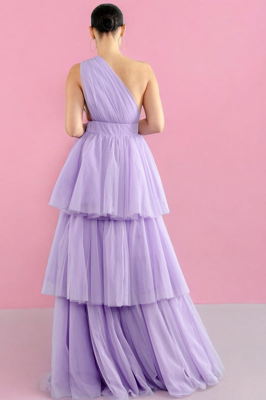 Vestido Largo Tul corto largo Falda Capas un hombro lila