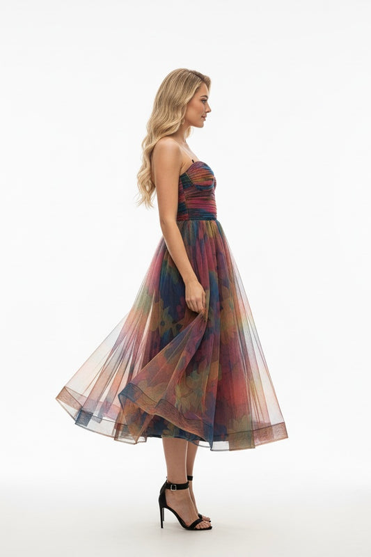 Vestido Floral Verde con Fucsia – Elegancia y Movimiento