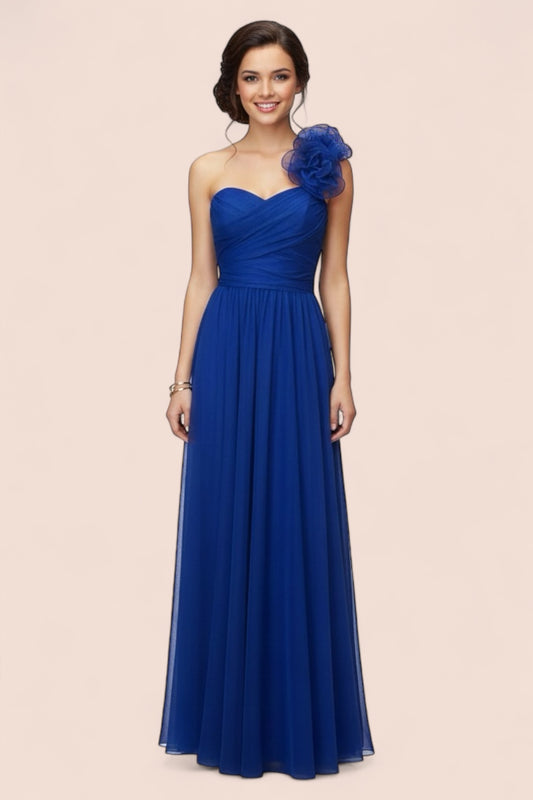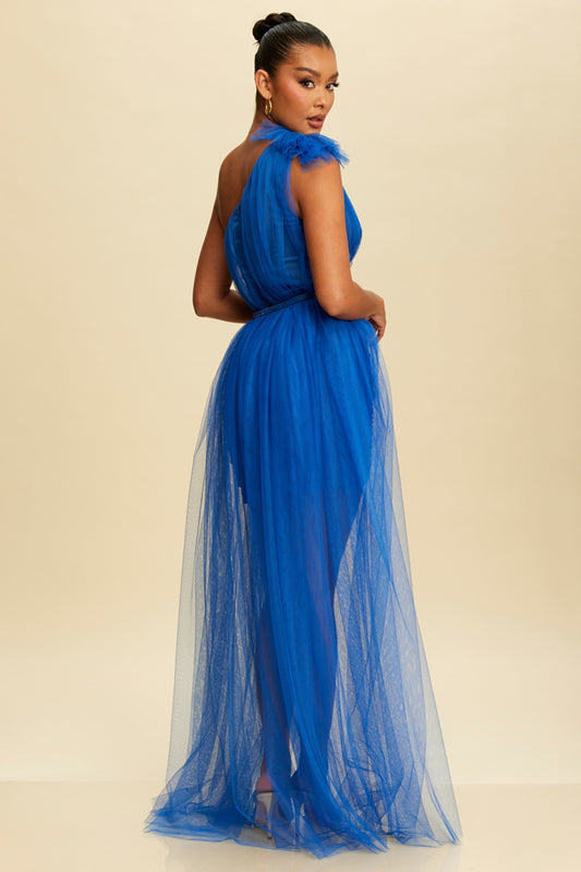 Vestido Largo Tul corto largo Un hombro Azul rey