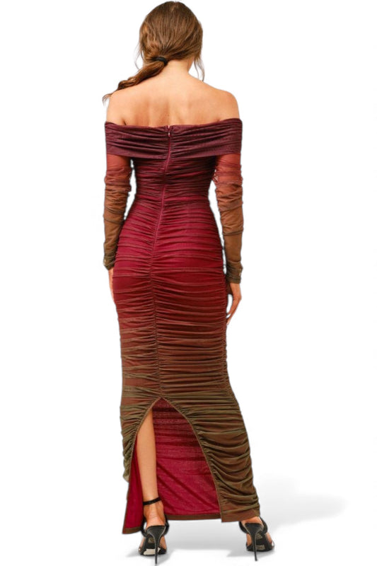 Vestido de Fiesta Largo con Escote en V Manga Larga y Abertura
