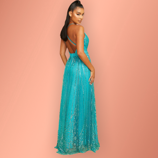 VESTIDO SEXY LENTEJUELAS AZUL CIELO