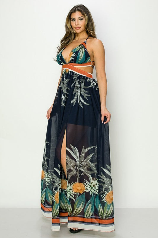 VESTIDO LARGO LENTEJUELA PLISADO CON MAXI ABERTURA