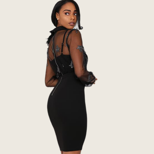 VESTIDO NEGRO EN A CON TIRAS DE BRILLOS