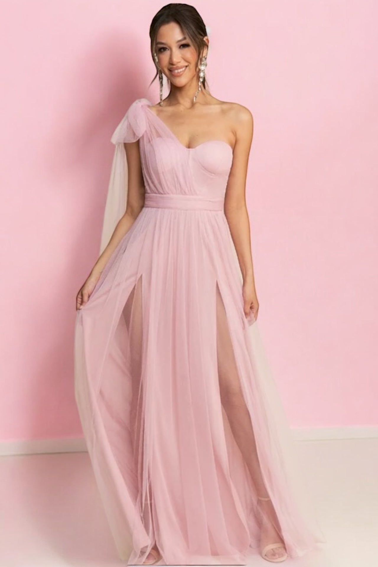 Vestido Largo Mesh Strapless Se amarra en Hombro